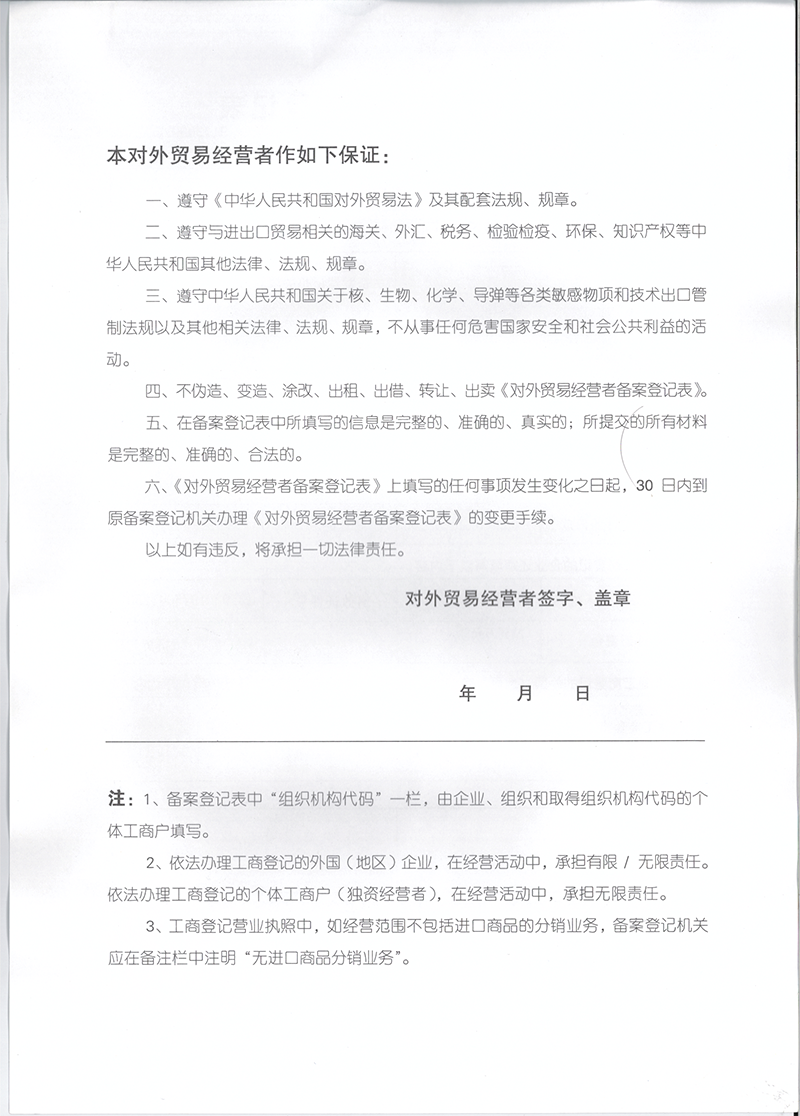 對(duì)外貿(mào)易經(jīng)營(yíng)者備案登記表