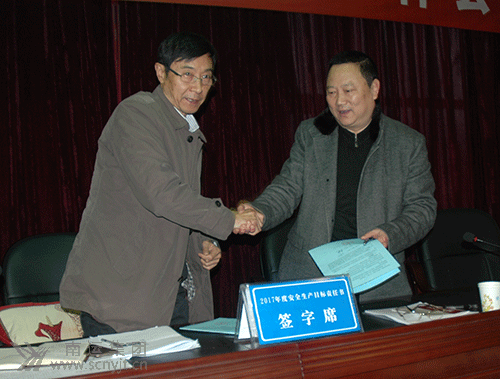王董事長到會作重要講話  王董事長與高坪分公司經(jīng)理蒲正宏簽訂《2017年度安全生產(chǎn)目標(biāo)管理責(zé)任書》