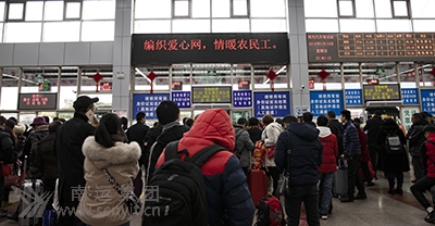 候車(chē)大廳里返鄉(xiāng)返崗農(nóng)民工依次進(jìn)站乘車(chē)