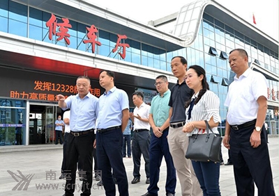 寧堅(jiān)(右一)一行在營(yíng)山汽車(chē)客運(yùn)站發(fā)車(chē)區(qū)調(diào)研