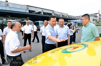 寧堅(jiān)(右三)一行在營(yíng)山汽車(chē)客運(yùn)站“金通工程”車(chē)輛前,對(duì)營(yíng)山12328助力脫貧攻堅(jiān)開(kāi)展情況給予充分肯定。