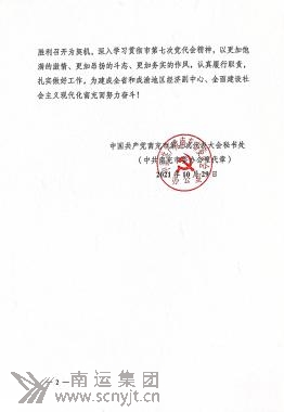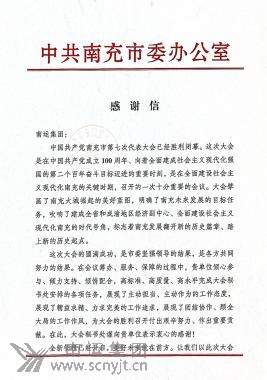 中國共產(chǎn)黨南充市第七次代表大會秘書處給南運(yùn)集團(tuán)致《感謝信》