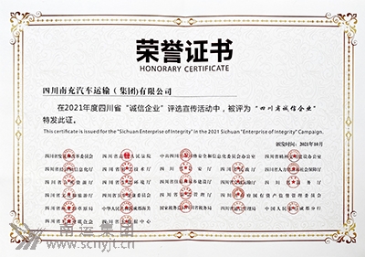 同創(chuàng)企業(yè)信用輝煌 共享南運誠信榮光 南運集團再次榮獲四川省“誠信企業(yè)”榮譽稱號