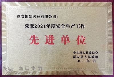 蓬安相如客運有限公司榮獲 “2021年度安全生產(chǎn)工作先進單位”稱號