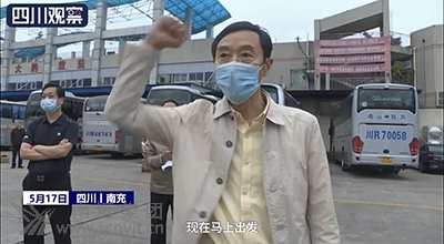 出征中,南運集團大巴車頭張貼了“南充人民心系廣安 攜手奮戰(zhàn)抗擊疫情”的醒目橫幅。駕駛員身穿防護服手拉“南運集團共產(chǎn)黨員先鋒隊”的大紅旗幟舉行抗疫宣誓。返回時,南運集團汽車駕駛培訓基地員工們手拉著“熱烈歡迎赴鄰英雄凱旋歸來!”和“向逆行最美駕駛員致敬!”的紅底白字的巨大橫幅,起到很好的宣傳效果。我司黨員先鋒隊奔赴鄰水抗疫一線執(zhí)行運輸保障任務(wù)的英勇壯舉,先后被《人民網(wǎng)》、《四川觀察》、《南充見APP》、《南充日報》、《南充電視臺》、《四川電視臺》、《騰訊網(wǎng)》、《搜狐網(wǎng)》、《新浪網(wǎng)》、《網(wǎng)易新聞》、《封面新聞》、《愛奇藝視頻》、《優(yōu)酷視頻》、《嗶哩嗶哩》、《今日頭條》、《通報今日新聞》、抖音等新聞媒體廣泛宣傳報道。特別是5月18日《四川觀察》以“21臺南運集團的大巴出發(fā)馳援廣安鄰水主要執(zhí)行轉(zhuǎn)運隔離人員的任務(wù)”為題進行了視頻報道,在全省引起反響。5月21日《人民網(wǎng)》在“為疫情防控注入交通力量……”一文中,報道了5月20日第二批手拉“南運集團共產(chǎn)黨員先鋒隊”大紅旗幟的駕駛員抵達廣安鄰水縣抗擊疫情的圖片,在全國反響很好。5月24日《今日頭條》以“南充馳援鄰水 你們辛苦了、鄰水人民感謝你們”為題,播放了歡送“南運集團”大巴有序離鄰返南的清晰流暢的視頻。