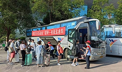 炎炎夏日里,三輛印有“南運(yùn)集團(tuán)”醒目大字,掛著《南充汽車客運(yùn)站校園直通車》鮮紅標(biāo)語(yǔ)的大巴車,整齊的擺放在西華師范大學(xué)校園內(nèi),6名穿著統(tǒng)一工裝,肩披綬帶的工作人員,站立在車旁。他標(biāo)志著,2022年暑期校園直通車正式啟動(dòng)。 暑假來(lái)臨前期,該站及早準(zhǔn)備,組織站務(wù)人員深入校園,開(kāi)展各種形式的宣傳、告知活動(dòng),同時(shí)對(duì)老師和同學(xué)們預(yù)期乘車情況進(jìn)行摸底排查,為師生們提供現(xiàn)場(chǎng)“客運(yùn)咨詢”服務(wù),積極尋找?guī)熒鷤兂塑囯y、行李轉(zhuǎn)運(yùn)難、打車費(fèi)用高等問(wèn)題的解決方法,為老師和同學(xué)們開(kāi)通了一條安全、便捷、溫馨的回家路。 7月7日早上7:30分,第一批直通車走進(jìn)校園,同學(xué)們提著行李箱,在車站工作人員的引導(dǎo)下,排隊(duì)有序上車,臉上洋溢著無(wú)比輕松的笑容。“請(qǐng)同學(xué)們帶好隨身物品,注意腳下安全”、“同學(xué)你先上,我給你拿行李箱”、“請(qǐng)戴好口罩,做好自我防護(hù)”……車站工作人員在現(xiàn)場(chǎng)引導(dǎo)、宣傳并積極提供全方位服務(wù)。 “這是我大學(xué)的第一個(gè)暑假,不用出校門(mén)就能直接去汽車站乘車,太方便了!薄半m然離家千里,但我切身感受到了南充汽車客運(yùn)站像家一樣的親情服務(wù)!钡谝淮巫蓖ㄜ嚪掂l(xiāng)的大學(xué)生陳軍和同學(xué)們一邊高高興興的趕乘直通車,一邊和服務(wù)的車站工作人員說(shuō)道。家住宜賓市的大學(xué)生孫康俊激動(dòng)地說(shuō);“車站和學(xué)校無(wú)縫銜接,讓大家不出校園就坐上回家的汽車,不僅可以減少疫情感染的風(fēng)險(xiǎn),還省去了轉(zhuǎn)車的煩惱,非常方便,特別貼心!睂(duì)車站的這一舉措,師生員工們紛紛表示感謝。 (彭慶紅)