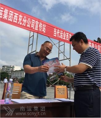西充分公司安全第二責任人馮興晏為 西充縣副縣長楊春林發(fā)放宣傳資料