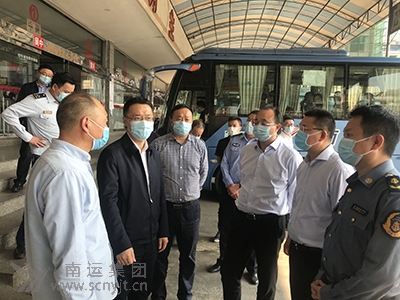 西充縣委書(shū)記孫駿(左二)檢查西充客運(yùn)中心疫情防控安全生產(chǎn)工作。