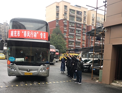 為了認(rèn)真貫徹落實省交通運輸廳《關(guān)于<四川省交通運輸“冬安行動”工作方案的通知>》精神,南充市2021年道路運輸“春風(fēng)行動”啟動儀式于1月27日上午在南運集團高坪汽車客運站舉行。市交通運輸局副調(diào)研員劉炬、市道路運輸管理局副局長廖洪堯、市道路運輸管理局高坪分局副局長鐘霖,南運集團副總經(jīng)理郭慶生、高坪汽車客運站站長李曉軍等相關(guān)人員參加啟動儀式。南充電視臺、南充日報、南充晚報等媒體對該啟動儀式進行了全程報道。 啟動儀式上,李曉軍代表運輸企業(yè)發(fā)言,他說籌備啟動此次“春風(fēng)行動”,南運集團高度重視,抽調(diào)了3臺車況良好的豪華大巴和6名駕駛技術(shù)過硬的駕駛員負(fù)責(zé)執(zhí)行首趟南充至廣東運輸任務(wù),將140余名在潮州等地工作的農(nóng)民工接回家鄉(xiāng)過年。發(fā)車前,南運集團對車輛按照規(guī)定和疫情防控要求進行了保養(yǎng)和消毒,配備了防疫物資,對隨車駕駛員進行了旅客服務(wù)和疫情防控專項培訓(xùn),確保農(nóng)民工從廠門到家門,“點對點,一站式”運輸方式落到實處,杜絕疫情通過交通工具傳播,承擔(dān)運輸企業(yè)應(yīng)有的社會責(zé)任。 廖洪堯講話指出,南充市2021年道路運輸“春風(fēng)行動”的啟動,是一手抓春運、一手抓疫情防控的重要舉措,大家要提高政治站位,強化責(zé)任意識,在確保安全運輸?shù)那疤嵯,做好疫情防控工作,讓需要返鄉(xiāng)的農(nóng)民工朋友愉快返鄉(xiāng)過年,平安健康返崗上班。祝大家一路平安!并對承辦此次啟動儀式的南運集團表示衷心的感謝! 啟動儀式在劉炬下達(dá)的發(fā)車令中圓滿結(jié)束。 (林薇 陳昭明)