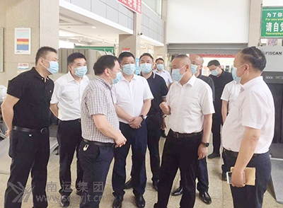 市政府副市長(zhǎng)陳有波(右二)到閬中客運(yùn)中心督導(dǎo)安全和疫情防控工作。