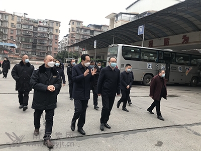 西充縣委書記張光全(左三)、西充縣委副書記、縣長鄧強(左二)深入西充汽車客運中心檢查春運安全生產(chǎn)工作。