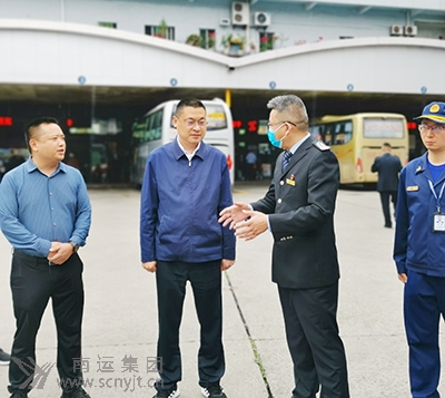 順慶區(qū)委常委、副區(qū)長陳崛(左二)檢查南充市城北汽車客運(yùn)站“五一”安全生產(chǎn)工作