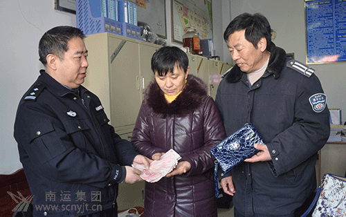 “太感謝你們車站的同志了,我這一年辛辛苦苦打工掙來的錢終于找到了,這下我可以高高興興的回家過年了” 。這一幕發(fā)生在2017年1月12日南充汽車客運站保衛(wèi)科辦公室里。 1月11日上午八時左右,車站值班站長黨洪金正巡視到站前廣場出租車下客處,發(fā)現(xiàn)一輛出租車停放在出租車入口處,堵塞了車輛通道但是車上卻沒有駕駛員。黨站長立即大聲詢問出租車駕駛員到哪里去了。不一會兒就看見一個男的手拿一個花提包急匆匆的從車站候車大廳里面跑了出來,坐上了出租車駕駛座。黨站長上前詢問是怎么回事,駕駛員回答到有一個坐出租車的人下車時遺漏了這個花提包,他發(fā)現(xiàn)后立即進入候車大廳尋找卻沒有尋找到坐車的旅客,正焦急不知道該怎么辦,黨站長了解情況以后主動承擔起尋找旅客的責任。黨站長帶著包會同車站派出所副所長何春林警官一起清點了包里的物品,包里竟然有8880元人民幣現(xiàn)金,以及身份證(張明清,女,51歲,儀隴縣義門鄉(xiāng)轉包河村五組18號)一張.黨站長和何所長感到此事的緊迫性,旅客在外打工掙點錢不容易,丟失了這么多的錢一定十分的焦急。而且現(xiàn)在已是年終了,為了讓丟包的旅客過上一個快樂、祥和的春節(jié),何副所長立即從身份證上入手,在公安的內部網(wǎng)上查找丟包旅客的相關信息。幾經(jīng)周折終于找到張明清堂哥的聯(lián)系電話,告知其堂哥讓張明清立即到南充汽車客運站保衛(wèi)科來領取丟失的物品。 1月12日上午9時左右張明清在車站保衛(wèi)科見到丟失的物品時,緊緊的握住了黨站長及何副所長的手一個勁的說著“謝謝、謝謝、太感謝了,你們真是好人啊。” (黃明 喬武林)