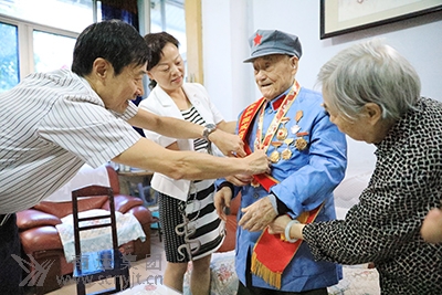 市委組織部副部長(zhǎng)、老干部局局長(zhǎng)劉彬看望慰問(wèn)南運(yùn)集團(tuán)104歲高齡老紅軍曹守成 為曹老紅軍佩戴“中共中央 國(guó)務(wù)院 中央軍委 慶祝中華人民共和國(guó)成立70周年”紀(jì)念章
