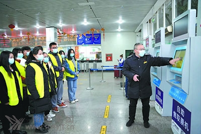 1月22日上午,共青團嘉陵區(qū)委、嘉陵區(qū)農(nóng)民工服務中心、嘉陵區(qū)志愿者協(xié)會、南充汽車客運站,在車站前廳舉行了“青春志愿行、溫暖回家路”——嘉陵區(qū)志愿服務春運“暖冬行動”啟動儀式,20名大學生志愿者和車站相關負責人、志愿者服務隊員參加了啟動儀式。 啟動儀式上,車站黨支部副書記、工會主席李曉光致歡迎詞,他說:“非常感謝參與春運志愿服務的大學生們,我們南充汽車客運站的工作人員將與你們一起,為返鄉(xiāng)農(nóng)民工提供更優(yōu)質(zhì)的服務! 接著,現(xiàn)場20名大學生志愿者一起進行了志愿者宣誓。車站管理人員對志愿者進行了培訓,講解了春運志愿服務的內(nèi)容和要求。隨后,志愿者們身穿印有“嘉陵青年”醒目標志的馬甲,披著“志愿者服務”綬帶,奔赴各個服務崗位。從售票廳到候車廳,隨處可以看見志愿者們的身影!澳!請出示你的健康碼、行程碼,配合測量體溫!薄罢埬骱每谡!薄拔襾韼湍嵝欣。”“請依次排隊保持距離購票、檢票……”一句句親切的話語,一次次溫馨的舉動,讓南來北往的旅客身心得到了撫慰,旅途在這里變得愉悅、輕松、順暢和暖心。 今年來站的志愿者們,大多數(shù)來自駐市各大中專院校,他們充滿朝氣,文化素質(zhì)好、思想境界高。無論是為旅客熱情服務,還是為旅客排憂解難,都使“奉獻、友愛、互助、進步”的志愿精神在南運集團南充汽車客運站的春運中發(fā)揚光大,受到廣大旅客好評。 (胡燕)