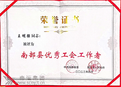 南部分公司工會(huì)榮獲“南部縣工會(huì)工作先進(jìn)集體”稱號(hào)