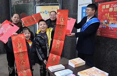 年味漸進(jìn),為營造春節(jié)氛圍,1月20日上午,南充市城北汽車客運(yùn)站為務(wù)工人員返鄉(xiāng)回家過年的旅客送“福袋”。 據(jù)悉,“福袋”里有窗花、對聯(lián)、紅包,旅客在購票排隊(duì)領(lǐng)取車站派送的新春禮物“福袋”!皼]想到剛抵達(dá)城北汽車站,就收到驚喜。”一位從廣州返鄉(xiāng)的南充籍務(wù)工人員如是說。 目前正值外出務(wù)工人員返鄉(xiāng)的高峰期,該站特準(zhǔn)備“福袋”作為禮物送給旅客,讓他們帶“!被丶疫^年。當(dāng)天,該站免費(fèi)送出“福袋”200多份,受到旅客點(diǎn)贊。 (城北汽車客運(yùn)站 羅雪)