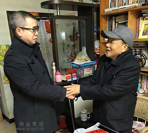 集團公司工會主席胡仕杰(左)在退休職工何坤賢家中慰問