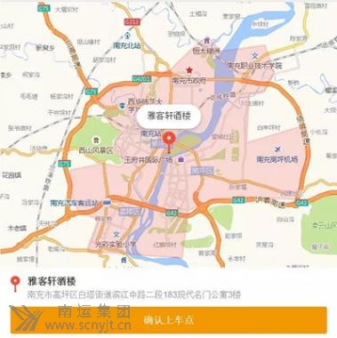 南充和岳池城區(qū)均可享受上門接送服務(wù),但具體請(qǐng)以訂車時(shí)顯示的接送范圍為準(zhǔn)哦!粉色區(qū)域?yàn)榻铀头秶?/span>