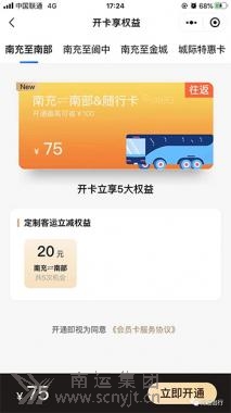 南運(yùn)集團(tuán)定制客運(yùn)南充至閬中、南充至金城、南充至南部線路會(huì)員卡重磅來(lái)襲,還有南運(yùn)出行平臺(tái)通用會(huì)員卡,讓你出行超省,更詳細(xì)的活動(dòng)規(guī)則,快隨小編一起往下看。 2021年的第一份出行特惠! 為給乘客出行提供優(yōu)惠福利,由南運(yùn)出行打造的定制客運(yùn)付費(fèi)會(huì)員產(chǎn)品“南充⇌南部隨行卡”“南充⇌閬中隨行卡”“南充⇌金城隨行卡”于1月1日正式上線! 什么是“隨行卡”?簡(jiǎn)單來(lái)說(shuō),就是可以一次購(gòu)買享多次出行優(yōu)惠。優(yōu)惠力度有多大?購(gòu)卡后購(gòu)票5折優(yōu)惠!可享5次!開卡最高可省150元! 活動(dòng)時(shí)間 2021年1月1日—2021年1月31日(31天) 數(shù)量有限,先到先得! 活動(dòng)規(guī)則 1.您選擇所需的定制客運(yùn)線路會(huì)員卡并完成支付后,系統(tǒng)將自動(dòng)派發(fā)卡中包含的所有優(yōu)惠券,您可使用優(yōu)惠券去抵扣應(yīng)付訂單金額; 2.優(yōu)惠券可使用的渠道為:南運(yùn)出行平臺(tái)微信小程序; 3.優(yōu)惠券自到賬后30天有效,每天限用1張優(yōu)惠券,請(qǐng)盡快使用; 4.定制客運(yùn)線路會(huì)員卡僅限南運(yùn)出行指定城際線路可用; 5.優(yōu)惠券僅可“會(huì)員卡購(gòu)買本人”(支付活動(dòng)的登陸賬號(hào)中,常用乘客中的本人)使用,不可替別人購(gòu)買或購(gòu)買后將票轉(zhuǎn)售給他人。 2021年的第二份出行特惠! 由南運(yùn)出行打造的南運(yùn)暢行卡也將于1月1日正式上線!特別一說(shuō),南運(yùn)暢行卡適用于南運(yùn)出行平臺(tái)所有定制客運(yùn)線路(南部至閬中線路除外)! 活動(dòng)時(shí)間 2021年1月1日-2021年1月31日(31天) 數(shù)量有限,先到先得 活動(dòng)規(guī)則 1.您選擇所需的南運(yùn)暢行會(huì)員卡并完成支付后,系統(tǒng)將自動(dòng)派發(fā)卡中包含的所有優(yōu)惠券,您可使用優(yōu)惠券去抵扣應(yīng)付訂單金額; 2.優(yōu)惠券可使用的渠道為:南運(yùn)出行平臺(tái)微信小程序; 3.優(yōu)惠券自到賬后30天有效,每天限用1張優(yōu)惠券,請(qǐng)盡快使用; 4.南運(yùn)暢行卡適用于南運(yùn)出行平臺(tái)所有定制客運(yùn)線路(南部至閬中線路除外)。 5.優(yōu)惠券僅可“會(huì)員卡購(gòu)買本人”(支付活動(dòng)的登陸賬號(hào)中,常用乘客中的本人)使用,不可替別人購(gòu)買或購(gòu)買后將票轉(zhuǎn)售給他人。 活動(dòng)流程 1.識(shí)別下方二維碼進(jìn)入“南運(yùn)出行”小程序