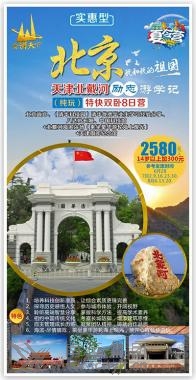 北京故宮、(清華科技園)、(清華優(yōu)秀畢業(yè)生學(xué)習(xí)經(jīng)驗(yàn)分享)、八達(dá)嶺長(zhǎng)城、中國(guó)科技館+北戴河海濱浴場(chǎng)(乘坐豪華游輪海上觀光)+天津周鄧紀(jì)念館8日營(yíng) 特色:1.培養(yǎng)科技創(chuàng)新潛質(zhì),讓綜合素質(zhì)更臻完善。 2.探尋歷史感悟人文,參與城市體驗(yàn),開(kāi)闊視野。 3.聆聽(tīng)高端智慧分享,掌握科學(xué)方法,提高學(xué)術(shù)素養(yǎng)。 4.相約中國(guó)傳統(tǒng)文化,考察長(zhǎng)城防御,增添建筑思維。 5.自主管理成長(zhǎng)歷練,凝聚團(tuán)隊(duì)精神,鑄就合作品質(zhì)。 6.海濱-盡情嬉戲,乘坐豪華游輪海上觀光,放開(kāi)心扉暢快游玩。 夏令營(yíng)贈(zèng)送:營(yíng)服、營(yíng)帽、旅游胸牌、當(dāng)?shù)孛刻煲黄康V泉水、集體照一張、陪同人員! D1:成都西—北京西 。夯疖(chē)上 成都西乘火車(chē)T8次08:10分硬臥(途經(jīng):德陽(yáng)、綿陽(yáng)、江油、廣元)。在夏令營(yíng)領(lǐng)隊(duì)人員的帶領(lǐng)下沿途欣賞中華山水美景,一路歡歌笑語(yǔ),一路溫馨平安,奔向偉大祖國(guó)首都——北京。 D2:北京 。罕本/周邊 12:36 北京西站接站; 13:15 乘車(chē)出發(fā),前往天安門(mén)廣場(chǎng); 14:00 游覽天安門(mén)廣場(chǎng)(約1小時(shí)),這是世界上最大的城市廣場(chǎng),也是社會(huì)主義新中國(guó)的象征。 15:00 參觀故宮博物院(約2小時(shí))。故宮是明、清兩代的皇宮,世界現(xiàn)存最大、最完整的古代宮殿建筑群,凝結(jié)著歷史的煙云,記載著歲月的滄桑。在這里,巧奪天工的建筑、燦爛文明的見(jiàn)證足以激起每一個(gè)華夏兒女的民族自豪感。游覽太和、中和、保和三大殿和乾清宮、坤寧宮、文華殿、御花園等建筑,探訪神秘的皇宮內(nèi)院歷史遺跡,感受博大精深的中華文化。 18:30 晚餐19:30乘車(chē)返回酒店休息。 D3:北京 住:北京/周邊 07:00 營(yíng)員起床洗漱 07:30 早餐 08:00 前往軍事博物館 08:30 中國(guó)人民革命軍事博物館位于北京天安門(mén)西面的長(zhǎng)安街延長(zhǎng)線上,籌建于1959年,是向國(guó)慶10周年獻(xiàn)禮的首都十大建筑之一。是中國(guó)唯一的大型綜合性軍事歷史博物館,全館有22個(gè)陳列廳、2個(gè)陳列廣場(chǎng)。軍博收藏34萬(wàn)多件文物和藏品。其中國(guó)家一級(jí)文物1793件,大型武器裝備250余件,藝術(shù)品1600余件,對(duì)外軍事交往中受贈(zèng)禮品2551件。其中有銅鎏金弩機(jī)、鎮(zhèn)遠(yuǎn)艦鐵錨、葉挺指揮刀、三八式步槍和解放軍第一輛坦克等重大歷史價(jià)值文物。 10:00 走進(jìn)中國(guó)最杰出的大學(xué)之一:清華大學(xué)科技園區(qū)(約1小時(shí))。參觀清華校科技園區(qū),感受清華文化。政策性閉校外觀。PPT展示,了解清華、北大悠久歷史與校園風(fēng)光,零距離的接觸清華的優(yōu)秀學(xué)子們,感受他們的智慧,感知他們的拼搏,同學(xué)們,讓我們用心品味一下大學(xué)真正的精髓與文化,把父母口中的"大學(xué)"切切實(shí)實(shí)的感受,清晰一下自己的未來(lái),給自己的人生描繪一幅愿景圖吧,在這里感受中國(guó)最高學(xué)府的人文魅力。(清華優(yōu)秀畢業(yè)生學(xué)習(xí)經(jīng)驗(yàn)分享)聆聽(tīng)優(yōu)秀學(xué)子交流,(約40分鐘)。 贈(zèng)送:清華大學(xué)博士服照片,清華大學(xué); 12:00 午餐 14:30 游覽圓明園通票(約1.5小時(shí))小交通自理,這里是清朝五代皇帝傾心營(yíng)造的皇家營(yíng)苑,被世人冠以“萬(wàn)園之園”、“世界園林的典范”、“東方凡爾賽宮”等諸多美名,身臨其境后才真正了解到圓明園。跟我一起走進(jìn)圓明園,一起去銘記那段屈辱的歷史! 18:00 晚餐 19:00 返回酒店休息 D4:北京 。罕本/北戴河 03:00 營(yíng)員起床,洗漱,整理行裝。早餐打包。 05:00 觀看莊嚴(yán)的升旗儀式、升旗儀式如遇當(dāng)日限流,則視為不可抗力因素取消,請(qǐng)周知。 07:30 乘車(chē)前往萬(wàn)里長(zhǎng)城。 09:00 前往“燕京八景”之首居庸疊翠,八達(dá)嶺長(zhǎng)城, “不到長(zhǎng)城非好漢”,登上海拔888米最高潮“北八樓”,極目遠(yuǎn)眺,腳下的長(zhǎng)城依山就勢(shì),蜿蜒起伏,如一條不見(jiàn)首尾的巨龍?jiān)诰d綿上嶺上翻滾爬到,氣勢(shì)磅礴,雄偉壯觀。 12:00 午餐。 14:00 參觀【中國(guó)科技館】(2小時(shí)),科學(xué)觀摩體驗(yàn)—中國(guó)科技館。參觀現(xiàn)代科技,古代科技和兒童科技展覽。參與“月球漫步” “模擬飛機(jī)”“機(jī)器人樂(lè)隊(duì)”“虛 擬世界”“魔力水車(chē)”“航天飛機(jī)科學(xué)實(shí)驗(yàn)”等豐富有趣,可以增長(zhǎng)知識(shí)項(xiàng)目,營(yíng)員動(dòng)手探索實(shí)踐,用雙手感受高科技的無(wú)窮魅力,培養(yǎng)科學(xué)思想,科學(xué)方法和科學(xué)精神。 16:00 人文景觀體驗(yàn):外觀奧林匹克公園,、鳥(niǎo)巢、水立方外景。是2008年北京奧運(yùn)會(huì)標(biāo)志性建筑物之一。奧運(yùn)會(huì)后成為北京市民參與體育活動(dòng)及享受體育娛樂(lè)的大型專(zhuān)業(yè)場(chǎng)所,并成為地標(biāo)性的體育建筑和奧運(yùn)遺產(chǎn)。 18:30 晚餐。 19:30 返回酒店休息。 D5:北京-北戴河 。罕贝骱 05:00起床、洗漱,用早餐。 6:00前往北京火車(chē)站根據(jù)火車(chē)時(shí)間或者汽車(chē)前往北戴河; 11:00抵達(dá